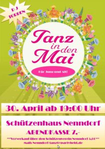 Kommt vom Sofa hoch und feiert mit uns in den Mai. Lasst uns gemeinsam einen schönen Abend verbringen – mit guter Stimmung, Musik, Tanz und netten Gesprächen.